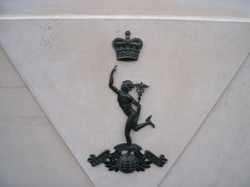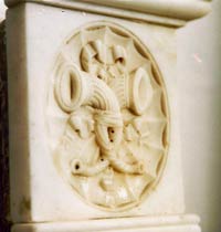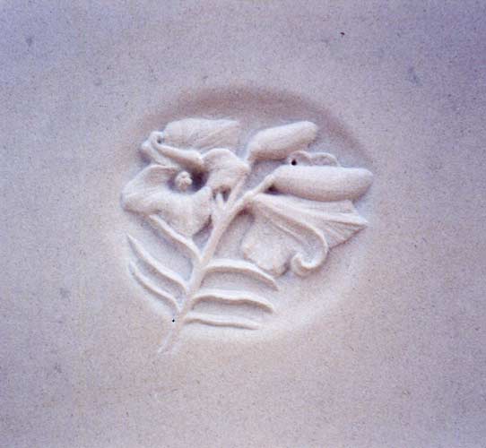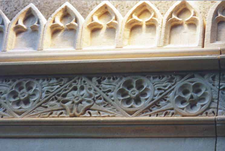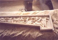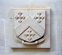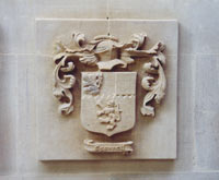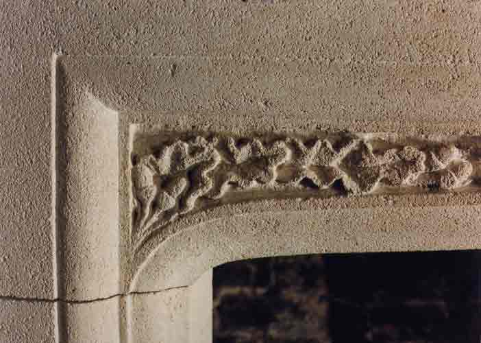 Shield Detail on Catlin Anderton Surround in Tetbury White Bed Stone