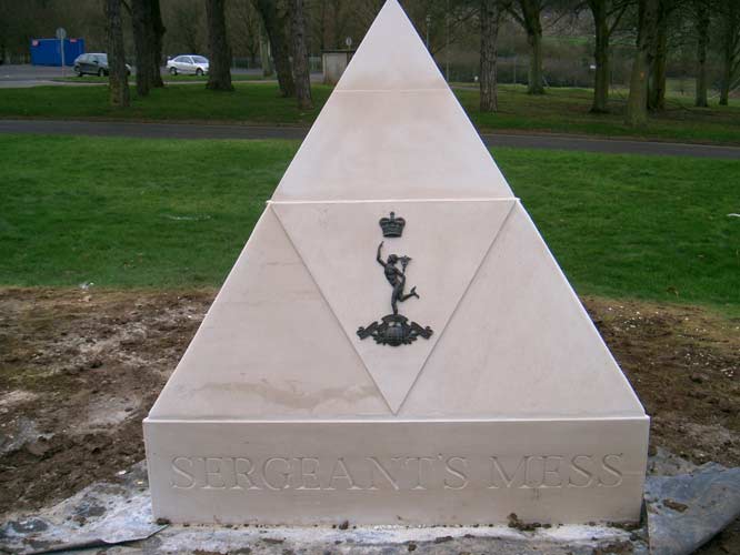 Tricorn in Portland Stone with the Royal Signals Cap Badge carved into each face
